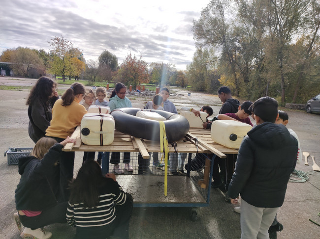 Am 29. Oktober wagte sich die Klasse 5b auf ein echtes Abenteuer: ein Projekttag am Bonameser Flugplatz – aber nicht in der Luft, sondern auf dem Wasser! Im Rahmen des ESL-Unterrichts (Emotionales und soziales Lernen) war das Motto: Den Teamgeist stärken und mit einem Floß den Fluss überqueren!