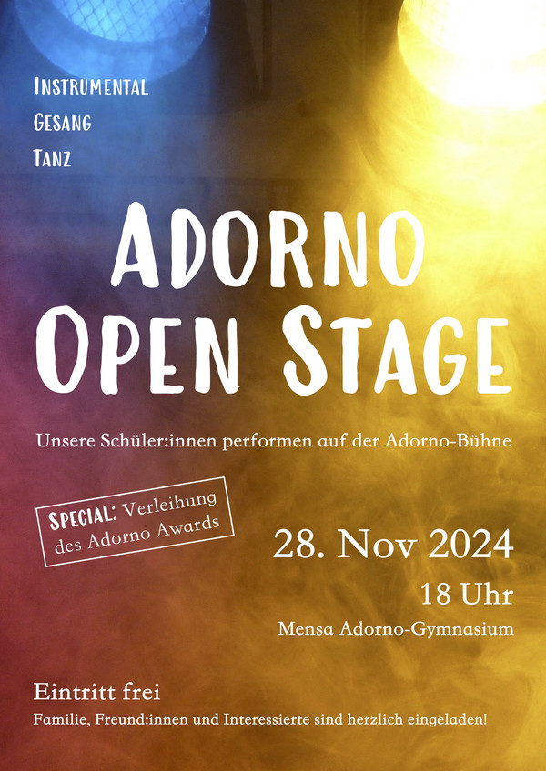 Im Dezember 2018 führte die Mathematik-Fachschaft zum ersten Mal den Mathematik-Wettbewerb des Landes Hessen am Adorno-Gymnasium durch, an dem alle Schülerinnen und Schüler der 8. Jahrgangsstufe teilnahmen.