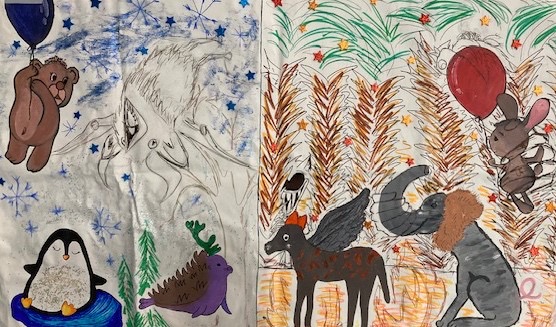 Seit 2021 kooperiert das Adorno-Gymnasium mit der Anna-von-Gierke-Stiftung, die sich der Kinder- und Jugendfürsorge widmet. Seit diesem Schuljahr betreut Frau Berkovych das Nachmittagsangebot "Farben der Seele - Begegnung und Ausdruck". Interessierte Schülerinnen und Schüler können in einem sicheren Raum ihre Emotionen in Bildern auszudrücken und ihre Resilienz stärken. In diesem interkulturellen Projekt malen junge Menschen aus der Ukraine und aus Deutschland gemeinsam auf einer großen Leinwand. Einige der entstandenen Bilder wurden auf der Vernissage des Projekts am 25.4.2024 ausgestellt.
