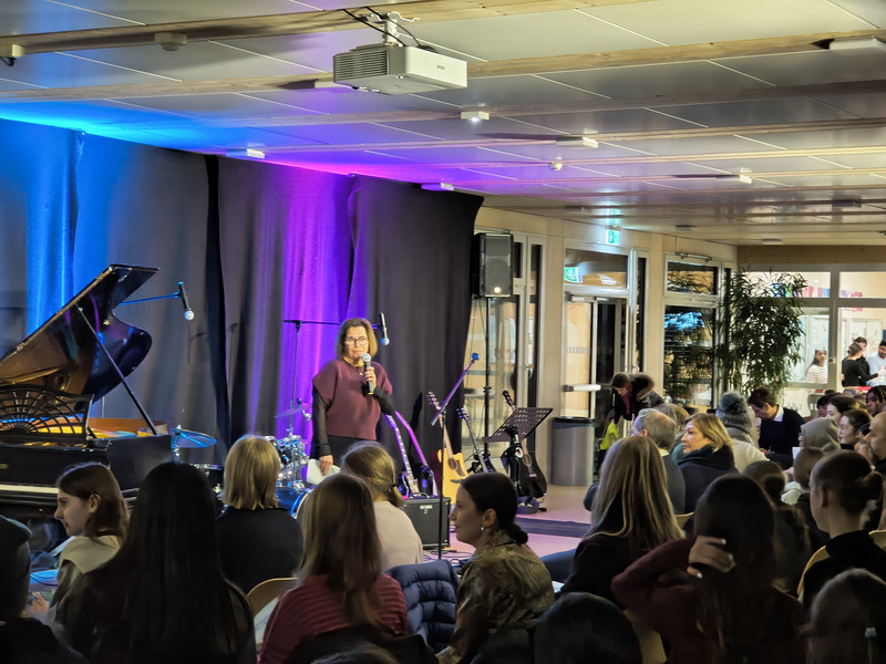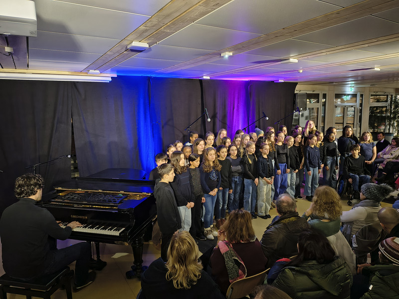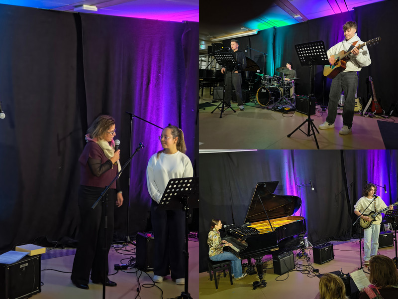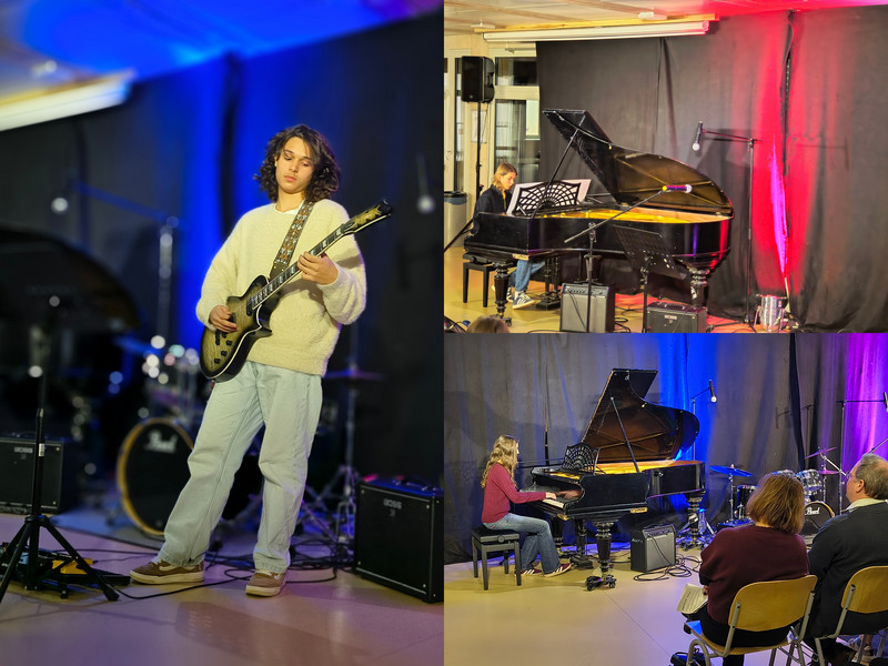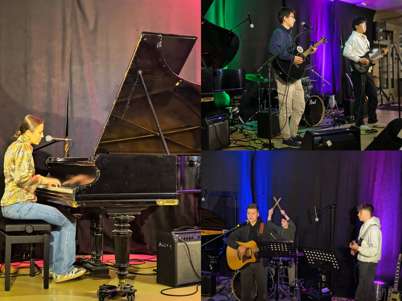 Die Idee der Open Stage - organisiert von der Fachschaft Musik - ist es, sich grundsätzlich Aufführungen jeder Art zu öffnen. An diesem Tag blieb es bei musikalischen Darbietungen mit Beiträgen durch Gesang, Klavier, Gitarre, kleiner Band und großem Chor, ‘on stage’ gebracht durch junge Menschen der Jahrgangsstufen 5 bis 11. Besondere Erwähnung gebührt einem Duo, Marlene und Otto aus der Jahrgangsstufe 9, die sich mit ihrem selbstgeschriebenen Song „Turn the Time“ für Stimme, Klavier und Gitarre intensiv und leidenschaftlich in die Ohren und Herzen der Zuhörenden spielten. Musik selbst zu schaffen - und dann aufzuführen -, darf sicher zur künstlerischen Königsdisziplin gezählt werden. Bleibt zu hoffen, zukünftig mehr davon hören zu dürfen.