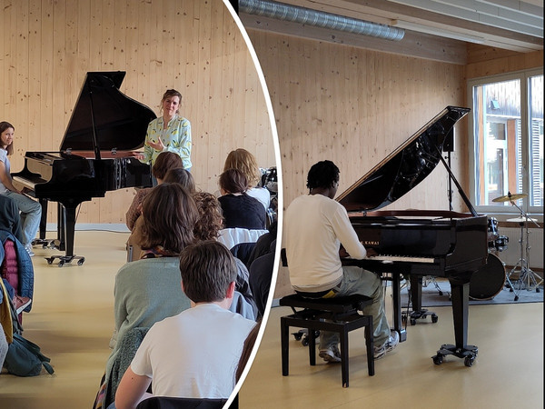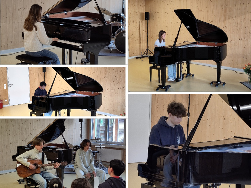 Neben Beiträgen mit Gitarre und Gesang standen insbesondere verschiedene Klavierdarbietungen auf dem Programm, die den bei dieser Gelegenheit eingeweihten neuen Flügel vielfältig zum Klingen brachten. Bei allen Programmpunkten zeigte sich einmal mehr die berührende individuelle Ausdrucksfähigkeit und -bereitschaft der musizierenden Schüler*innen, mit der diese sich in der dargebotenen Musik auf ganz persönliche Weise zeigten.