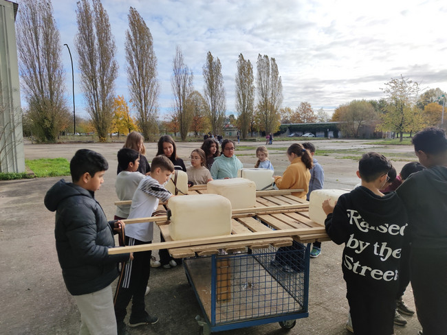 Mit viel Teamgeist, handwerklichem Geschick und einer guten Portion Mut entstand schließlich eine kreative Konstruktion aus Holzlatten, Seilen und Plastikfässern.