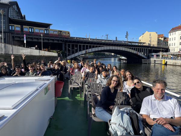 Die 10. Klassen des Adorno-Gymnasiums absolvierten pünktlich zum sonnigen Septemberanfang ihre Berlin-Klassenfahrt mit gesellschaftswissenschaftlich-historischem Schwerpunkt. In zwei großen Gruppen von einmal zwei und einmal vier Klassen erkundeten sie die Stadt. Dabei konnten sie beispielsweise eine Stadtrallye und eine Bootsfahrt genießen.