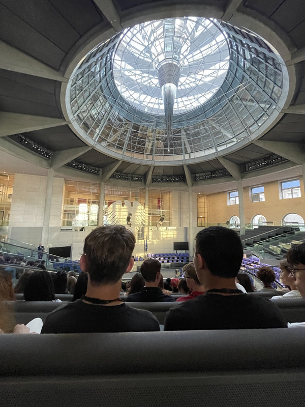 Aber auch Lernen und Gedenken waren wichtige Aspekte dieser Fahrt. So besuchten die Schülerinnen und Schüler beispielsweise die ehemalige Berliner Mauer, sprachen mit Zeitzeugen und sahen eine Filmvorstellung zum ehemals geteilten Deutschland. Zudem besuchten sie die Neue Synagoge, das DDR-Museum und die Gedenkstätte Hohenschönhausen mit dem ehemaligen Staatssicherheits-Gefängnis der DDR. Andere teilnehmende Klassen setzten weitere wichtige geschichtliche Lernschwerpunkte und besuchten beispielsweise auch das Jüdische Museum und ein Konzentrationslager und stärkten die Klassengemeinschaft mit Aktivitäten im Grünen. Höhepunkt der Fahrt war für zwei der Klassen eine Einladung in den Bundestag, komplett mit Essenseinladung, Vortrag und Besuch der Kuppel. In Kürze wird uns ergänzend dazu auch ein Minister des Bundestages am Adorno-Gymnasium besuchen. Eine gelungene Reise mit vielen unvergesslichen Eindrücken.