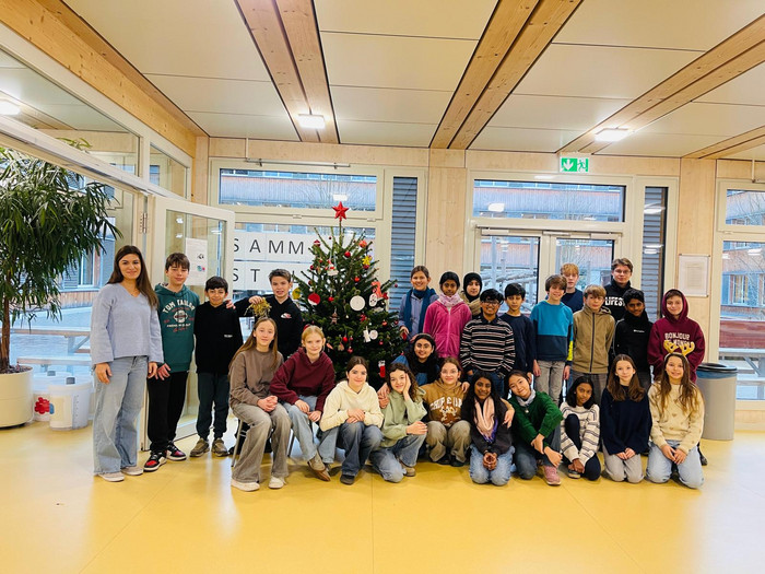 Auch in diesem Jahr hat unsere Klasse 6c den traditionellen Weihnachtsbaum pünktlich zum 1. Advent geschmückt. Mit vielen kreativen Ideen und einer guten Portion Teamarbeit entstand ein Baum, der nun den Schulflur sichtbar in Adventsstimmung versetzt. Unterstützt wurde die Klasse dabei von ihrer Mathematiklehrerin Frau Deniz, die mit Geduld, Organisationstalent und einem guten Blick für Symmetrie zum Gelingen beigetragen hat.