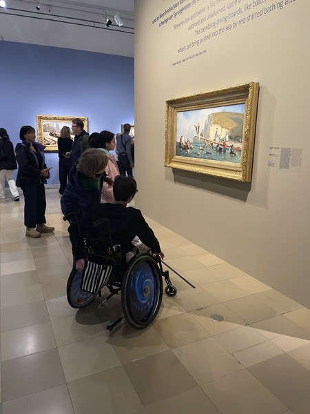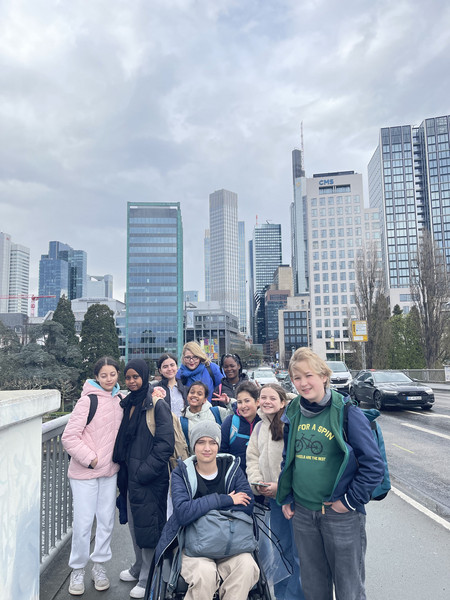 Die jungen Künstlerinnen und Künstler der Klassenstufen 5 bis 8 meisterten zunächst im Team kleinere Herausforderungen des barrierefreien Stadtverkehrs, bevor sie die Ausstellung besuchen konnten, aber dann wurden sie mit traumhaften Landschaftsbildern und einem kleinen Eis belohnt. Sie nahmen im Museum Monets Maltechniken ganz genau unter die Lupe und wollen ein paar seiner Kompositionen demnächst in der AG ausprobieren. Da es für einige der erste schulische Museumsbesuch war, war der Ausflug nicht nur ein schöner Start in die bevorstehenden Osterferien, sondern auch in ein künstlerisch inspiriertes Leben unserer reichhaltigen Frankfurter Museumslandschaft. Alle waren sich am Ende einig, dass sie auf jeden Fall noch einmal wiederkommen möchten. Wer Lust auf Meer in Frankfurt oder generell auf einen Museumsbesuch bekommen hat, findet vielleicht am Samstag, dem 26. April 2026 Gelegenheit, diese und weitere Ausstellungen bei der „Nacht der Museen“ zu besuchen.