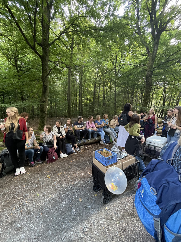 Die Chemiker erstaunten ihr Kollegium, von dem ein Großteil teilgenommen hat, mit abwechslungsreichem und köstlichem Catering. Da es am Abend im Restaurant, zu dem dann noch mehr Kollegen hinzukamen, bereits wieder etwas Gutes gab, war die Kalorienbilanz - außer bei den Kolleginnen und Kollegen, die unermüdlich die vollen Versorgungswagen gezogen hatten - trotz strammer Wanderung auf wunderschönen Waldwegen wohl großzügig betrachtet eher bei plus/minus null. Für die Lehrkräfte war der Tag aber ein voller Gewinn, denn die guten Gespräche und die gemeinsame Aktivität haben uns wieder einmal gezeigt, dass wir zwar sehr gern zusammen arbeiten, aber eben auch unsere kollegiale Gemeinschaft sehr schätzen und zelebrieren. Ein herzliches Dankeschön an die Fachschaft Chemie für die Organisation dieses schönen und gelungenen Kollegiumsausfluges.