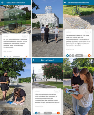 Die MathCityMap App ist ein Projekt des Instituts für Didaktik der Mathematik und Informatik der Goethe-Universität und wird seit 2012 entwickelt. Durch die Kooperation mit dem Adorno-Gymnasium sind nun neue Aufgaben in der direkten Umgebung der Schule entstanden, die direkt von Schüler:innen getestet wurden. Auf diese Weise kann die Lernapp weiterentwickelt werden.