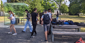 Für die Schüler:innen des Adorno-Gymnasiums haben Studierende der Goethe-Universität „Mathtrails“ entwickelt: Dieses Mal nicht im Grüneburgpark, sondern direkt neben der Schule auf dem Campus Westend. In den letzten Wochen haben drei 10. Klassen die App ausprobiert und realitätsnahe Mathematikaufgaben im Freien gelöst.