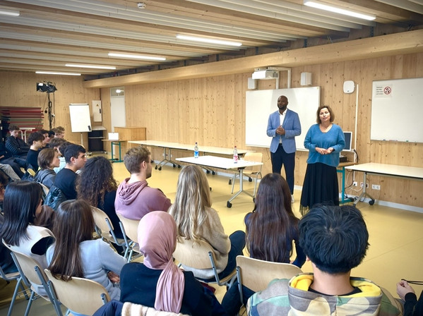 Die Schülerinnen und Schüler der Klassen 10c und 10f hatten am 20.11.2025 die Gelegenheit, Armand Zorn, den stellvertretenden Fraktionsvorsitzenden der SPD, welcher mit einem Direktmandat Frankfurt a. M. im Deutschen Bundestag vertritt, persönlich kennenzulernen und spannende Einblicke in die Bundes- und Weltpolitik zu tätigen.