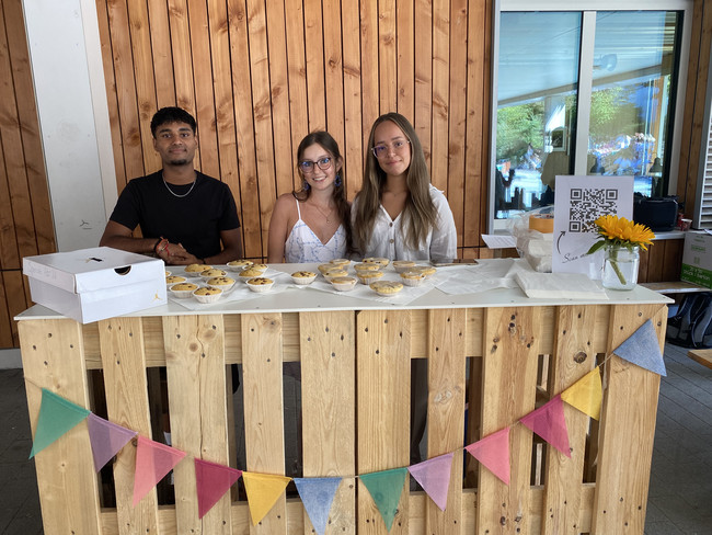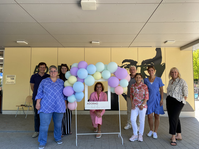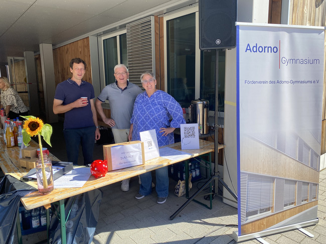 Mit Sonnenblumen ausgestattet ging es im Anschluss in Richtung der Klassenzimmer, in denen die Kinder ihre erste Unterrichtsstunde am Adorno-Gymnasium hatten. Währenddessen sollte für die wartenden Eltern aber keine Langeweile aufkommen: Sie wurden mit Getränken und Kuchen vom Förderverein und der Q-Phase versorgt, konnten den Klima-Kiosk und unsere nachhaltige Schülergenossenschaft „Adornos Vision“ kennenlernen oder sich mit Mitgliedern des Schulelternbeirats und des Fördervereins austauschen.