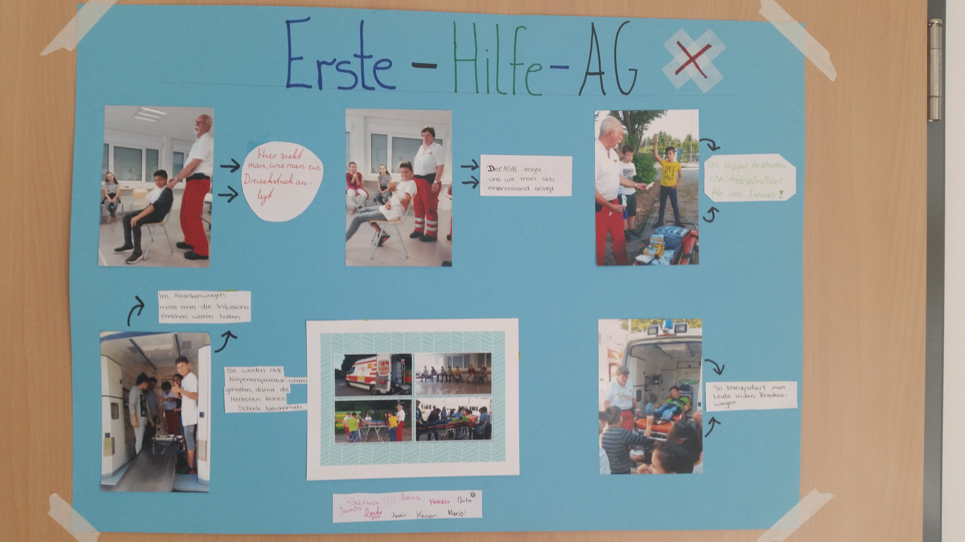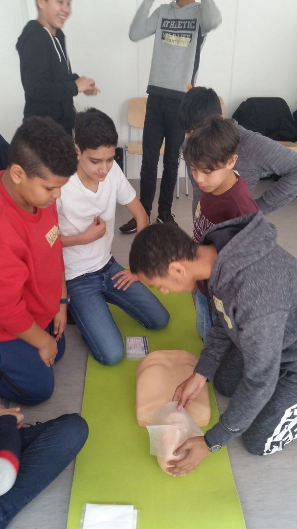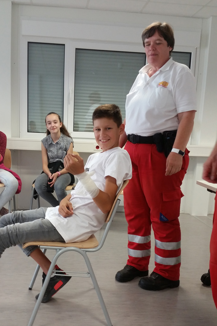 In dieser AG lernt ihr, wie man Erste-Hilfe bei Unfällen und Verletzungen an der Schule, bei sportlichen oder anderen Schulveranstaltungen leisten kann.