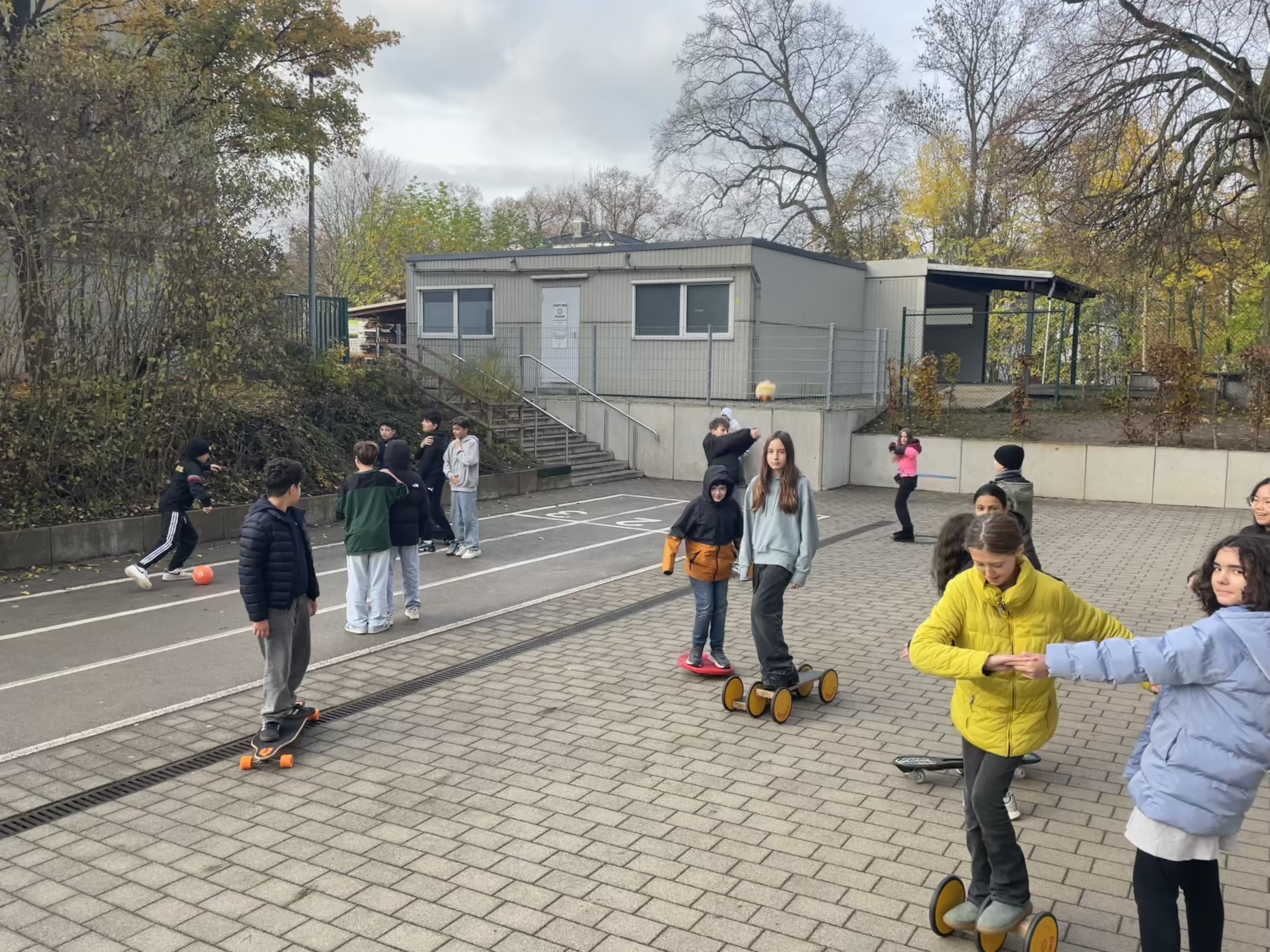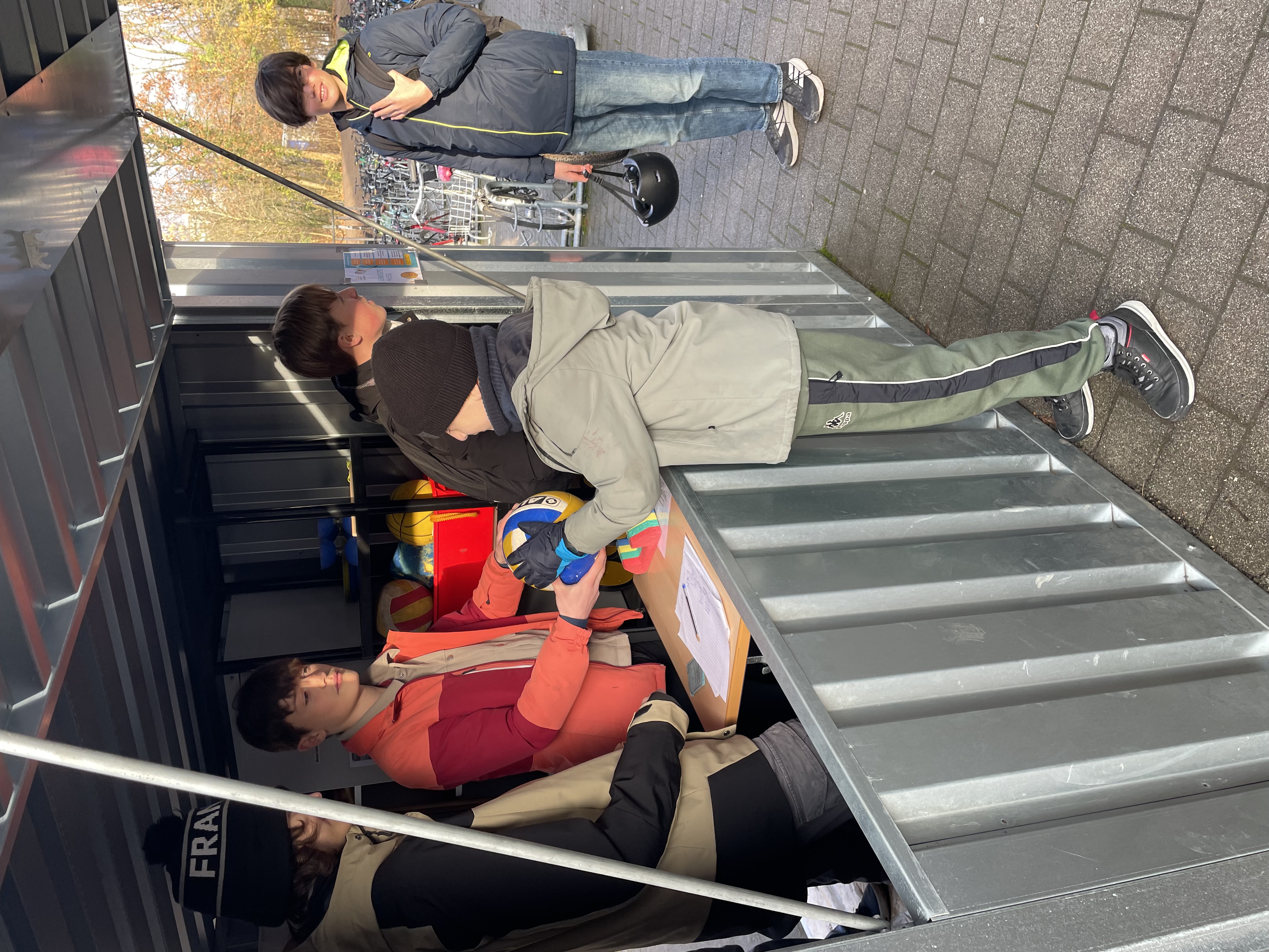 Die Bewegte Pause findet in jeder 1. und 2. großen Pause am Container bei den Fahrradständern statt. Zum Auftakt stehen dort nun auch zahlreiche neue Spiel- und Sportmaterialien bereit, die für noch mehr Abwechslung sorgen. Ob Ballspiele, kleine Bewegungsspiele oder gemeinsame Action auf dem Schulhof – alle sind herzlich eingeladen, das Angebot auszuprobieren und die Pausenzeit aktiv zu nutzen.