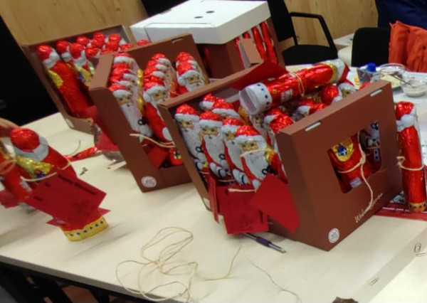In diesem Jahr hat die SV erneut eine Schoko-Nikolaus-Aktion durchgeführt. Schülerinnen und Schüler konnten ihren Schulkamerad:innen einen Schoko-Nikolaus zum 6. Dezember schenken. Eine Woche vor Nikolaus verkaufte die SV dafür kleine Karten, auf die die Schüler:innen den Empfängern eine liebe Botschaft schreiben konnten, welche dann an die Fairtrade produzierten Nikoläuse gehängt wurden. Nach diesen Vorbereitungen fing der schönste Teil der Aktion erst an: Als die Schoko-Nikoläuse von der SV in den Klassen an die Empfänger verteilt wurden, konnte man das Strahlen über die Nikoläuse sehen. Es hat die SV sehr gefreut, den Schülerinnen und Schülern mit den Nikoläusen eine Freude zu machen.