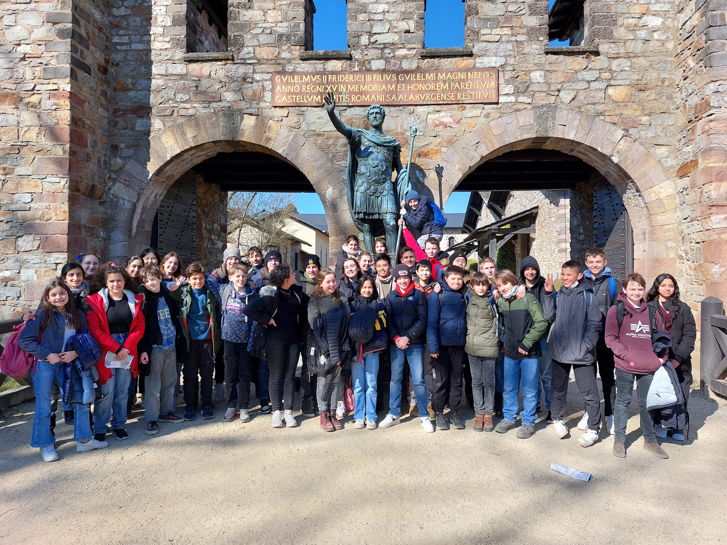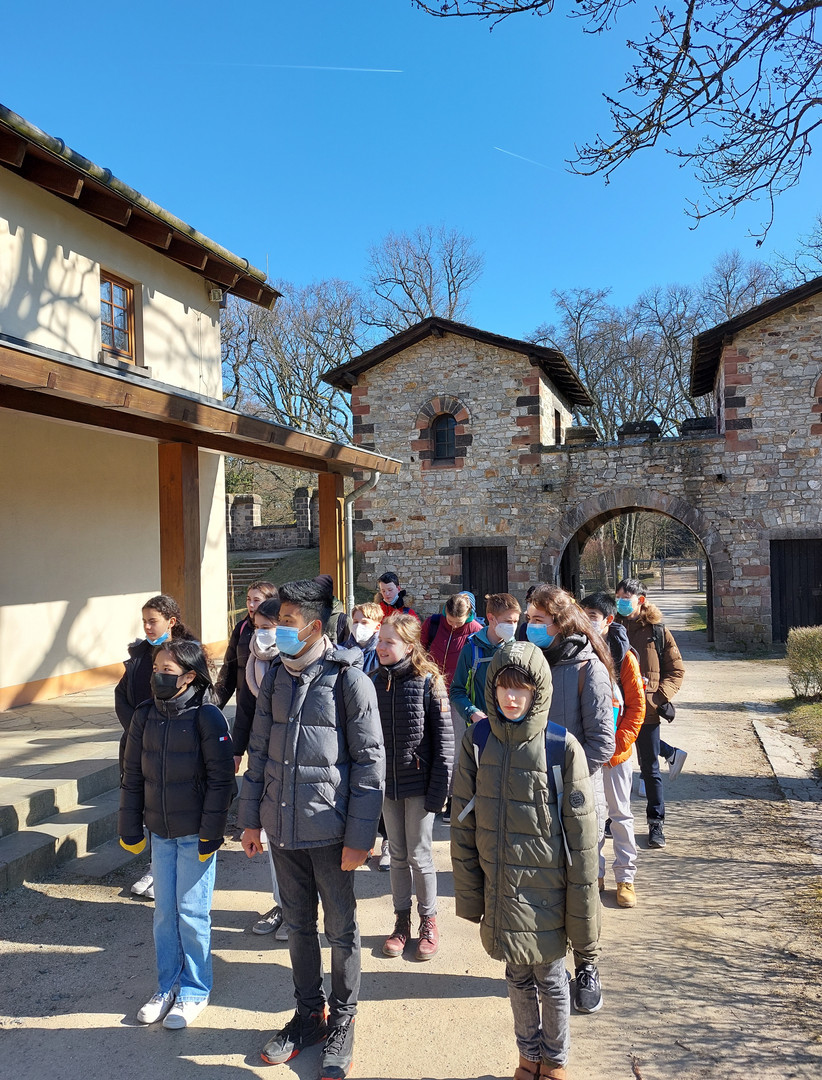 Bei einem gemeinsamen Tagesausflug der Klassen 7a und 7b zum Römerkastell Saalburg erlebten die Schülerinnen und Schüler hautnah, wie sich die römischen Soldaten in Germanien fühlen mussten: Bei frischen germanischen Temperaturen und einem kalten Wind konnte man Anfang März wohl eher an Winteranfang denken. Glücklicherweise zeigte sich die Sonne den ganzen Tag über, sodass ein Aufwärmen bis zum Mittag wieder möglich war.