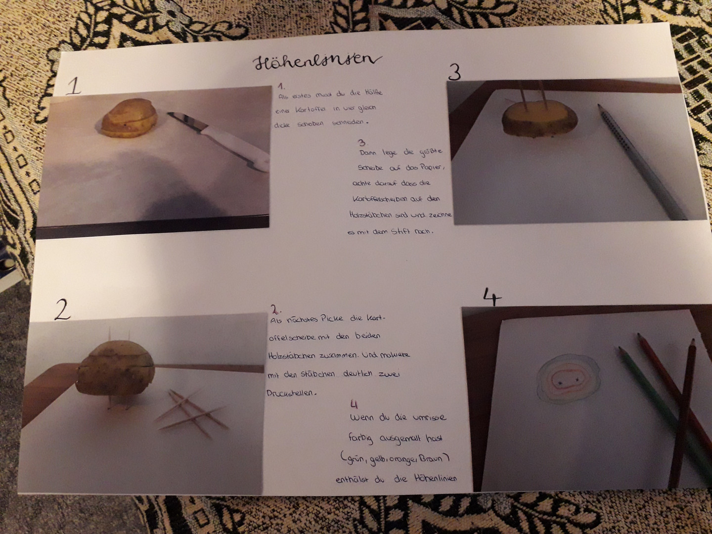 Zunächst wurde ermittelt wie man von einem Berg zu dessen Darstellung auf einer Karte gelangt. Dabei entstanden folgende Modellversuche: