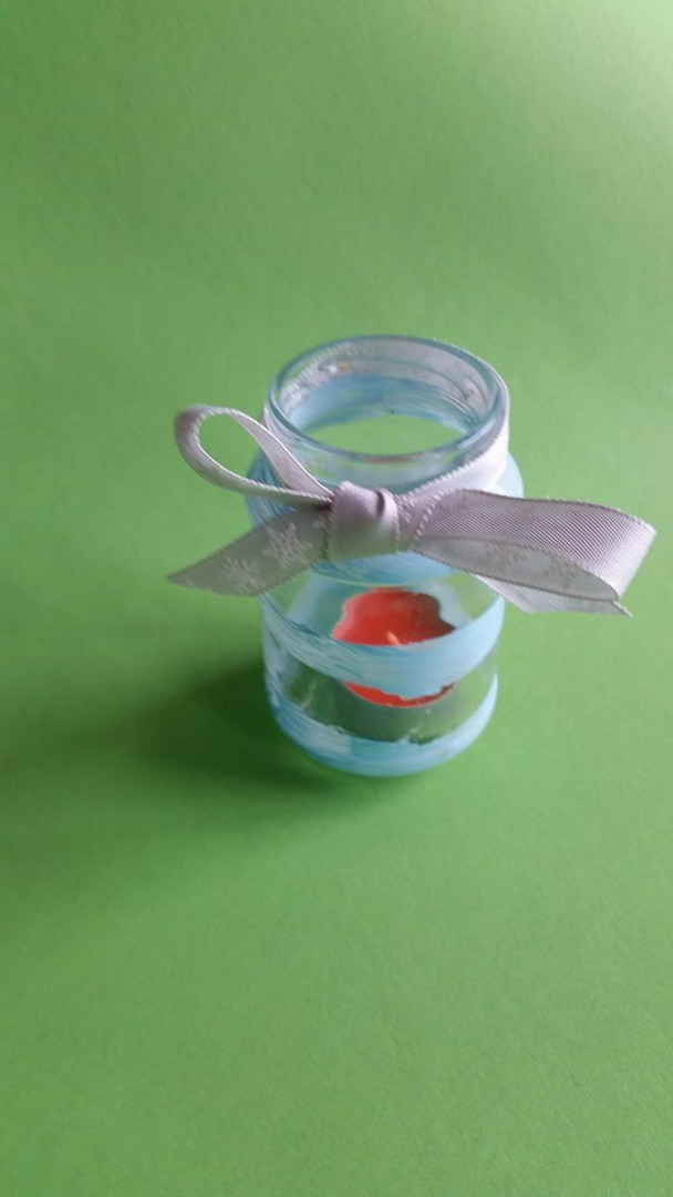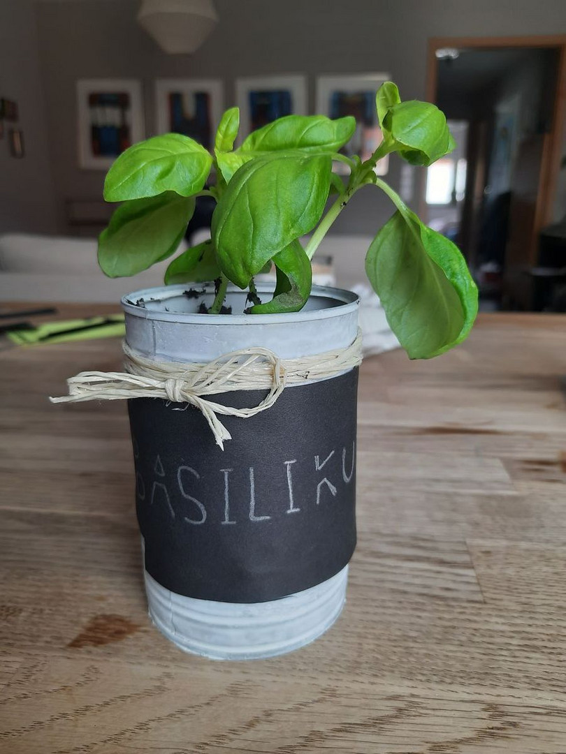 Blumentopf aus einer Dose und ein Windlicht aus Glas