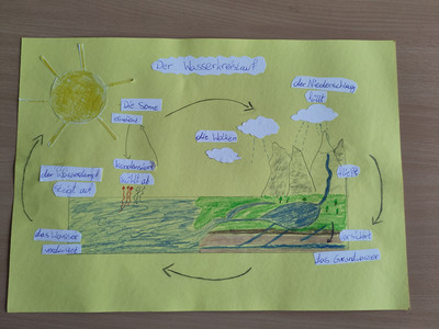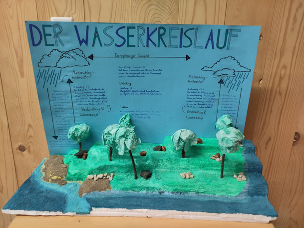 Außerdem haben Güney und Vasili sich ausführlicher mit dem Wasserkreislauf beschäftigt und neben einem Vortrag auch ein tolles Modell erstellt: