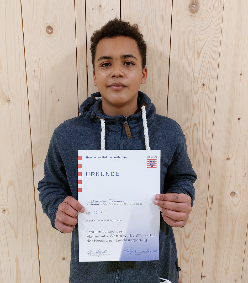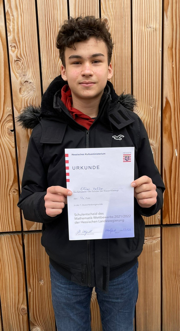 Während sich die meisten von uns im Laufe des Novembers und Dezembers um die Weihnachtsvorbereitungen kümmern, stecken die Achtklässler mitten in den Vorbereitungen auf den Mathematik-Wettbewerb des Landes Hessen. In diesem werden die Unterrichtsinhalte der gesamten Jahrgangsstufe 7 und 8 geprüft, was in jedem Jahr eine große Herausforderung für viele Schüler:innen bedeutet. Trotz der Einschränkungen, die die Corona-Pandemie weiterhin mit sich bringt, und der geringeren Vorbereitungszeit der Wettbewerbsinhalte aufgrund vieler Ausfälle konnten einige Schüler:innen sehr gute Leistungen erzielen. Wir gratulieren herzlich den fünf Schülern mit den besten Ergebnissen an unserer Schule, die sich dadurch für die zweite Runde qualifizierten: