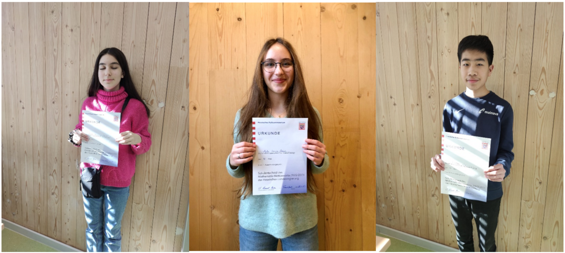 Die aktuellen Achtklässler:innen haben sich im Dezember traditionell den Aufgaben des Mathematik-Wettbewerbs des Landes Hessen gestellt. Bei der Ausgabe der Halbjahreszeugnisse wurden die besten Schüler:innen ausgezeichnet.