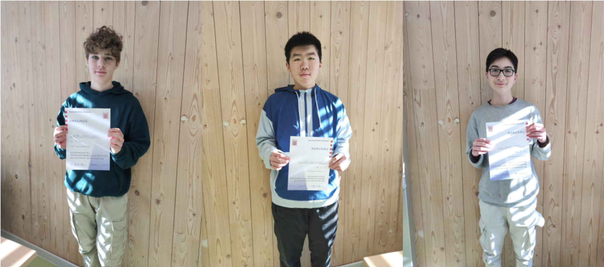 Im Mathematik-Wettbewerb des Landes Hessen werden die Unterrichtsinhalte der gesamten Jahrgangsstufe 7 und 8 geprüft, was in jedem Jahr eine große Herausforderung für viele Schüler:innen bedeutet. Insgesamt 16 Schüler:innen konnten sehr gute Leistungen in diesem Wettbewerb erreichen, was das bisher beste Ergebnis an unserer Schule bedeutet. Den sechs Schüler:innen unter diesen mit den höchsten Punktzahlen gratulieren wir herzlich; diese qualifizieren sich dadurch für die zweite Runde: